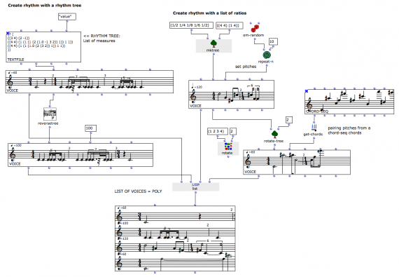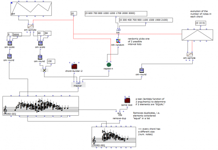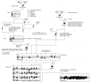 | Basic visual program including note, chord, chord-seq, multi-seq objects; om-random, dx→x and use of box states… Download the patch: cnmat-patch-1.omp | ![]() |