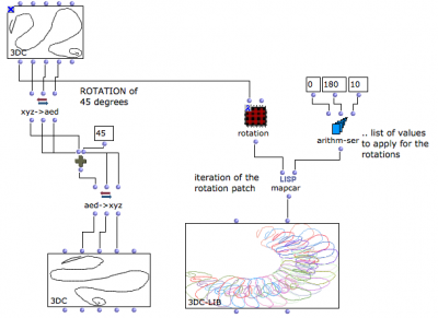 | Rotation of a 3DC and application in an iterative process (mapcar). Download the patch: curves-2.omp | ![]() |