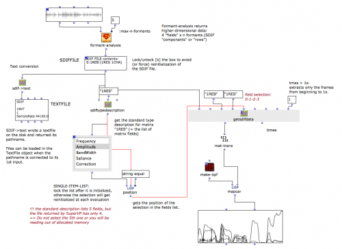 | Formants analysis Example of a more complex description and deeper exploration of the SDIF data. Download the patch: sound-analysis-2-formants.omp | ![]() |