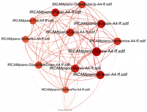 N.B. For both graphs, nodes sizes and colours = average weighted degree; larger and darker = high degree, and vice versa.