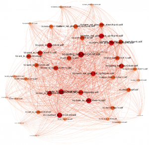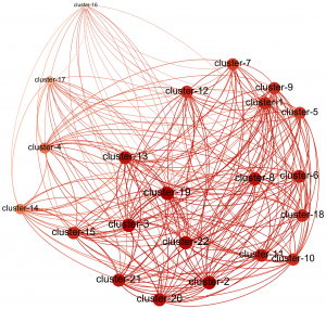 N.B. For both graphs, nodes sizes and colours = average weighted degree; larger and darker = high degree, and vice versa.