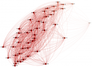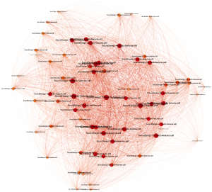 N.B. For both graphs, nodes sizes and colours = average weighted degree; larger and darker = high degree, and vice versa.