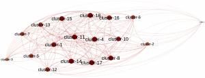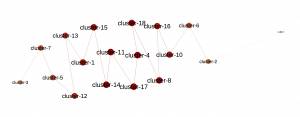 Here is a graphic representation of the resulting clusters space network (MultiDimensional Scaling) and its minimum spanning tree (Kruskal).