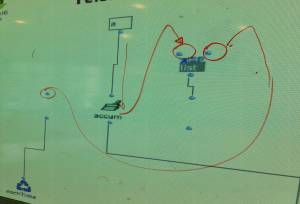 La première étape a consisté à construire une dynamique visuelle fondée sur le parcours du graphe, par un fondu enchaîné des différentes images. Un système avec mémoire gérait le temps moyen d’affichage de chaque image, et le changeait lors de la répétition d’une image.